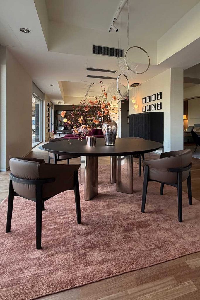 Zona dining completa dal design contemporaneo, pensata per coniugare convivialità, comfort e coerenza estetica.